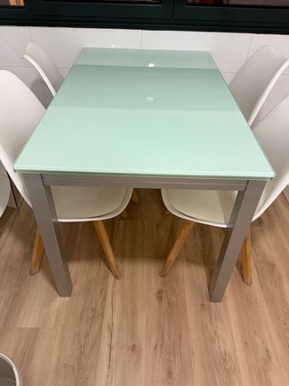 Mesa de cocina extensible con un diseño moderno y elegante. - Tablero de cristal. - Estructura de metal. -Extensible por ambos lados