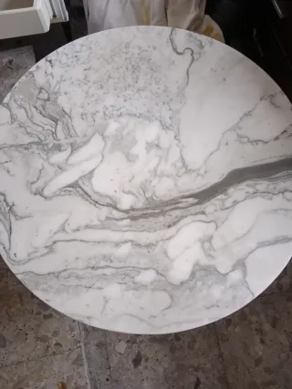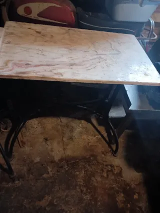 Mesa con superficie de mármol y base de hierro. - Diseño elegante y robusto. - Combina materiales de calidad para un acabado duradero. Tengo 3 mesas recoger barbadas ourense.precio algo negociable