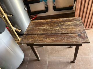 Mesa alta p hostelería con superficie de madera y base de hierro. - Tablero con bordes redondeados. - Base redonda y robusta. Tengo 2 redonda y 1 cuadrada.retirar en barbadas Ourense
