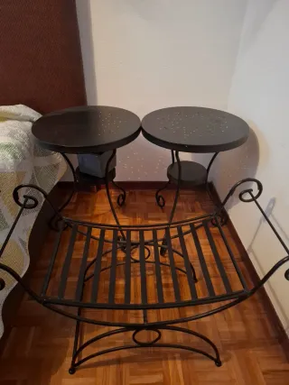 Conjunto de mesas de terraza con un diseño elegante. - Estructura de metal negro. -