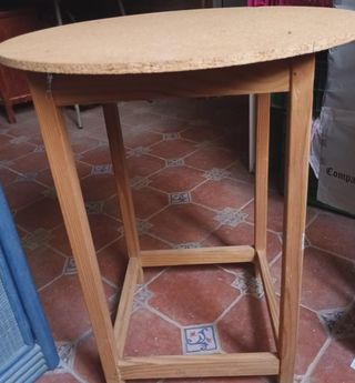 Mesa auxiliar de madera con superficie redonda. - Medidas: 50 cm de diámetro x 60 cm de alto. - Diseño sencillo y funcional.