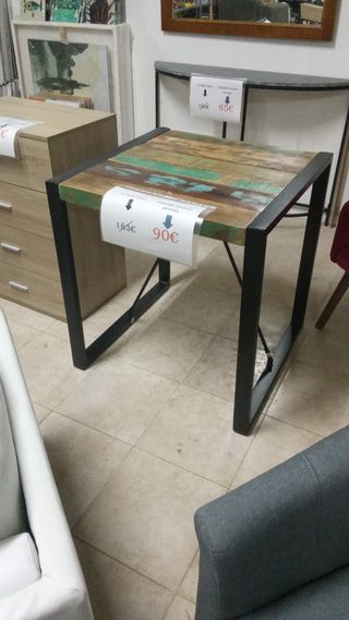 NUEVO,mesa de estilo vintage con un diseño único. Puedes comunicarte al 601530970. DISFRUTA DE NUESTRO PRECIO ESPECIAL, SI COMPRAS AL POR MAYOR. - Tablero de madera con acabado rústico y detalles en verde azulado. - Patas de metal negro.