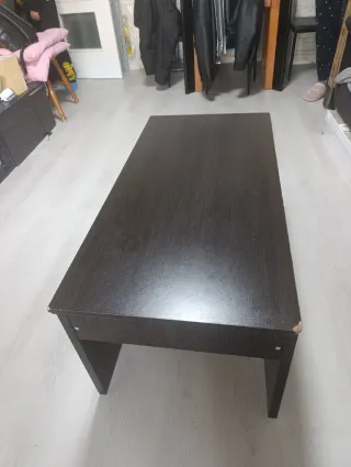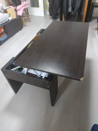 Mesa de centro con diseño moderno y funcional, ideal para complementar tu sala de estar. - Mecanismo elevable para mayor versatilidad. - Acabado en madera oscura.
