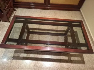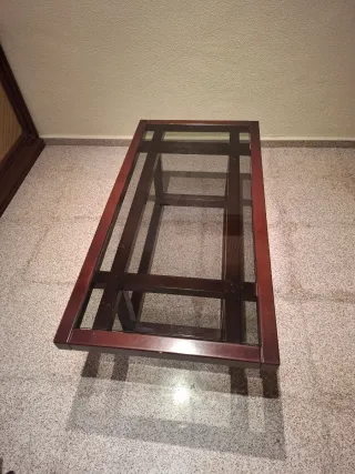 Elegante mesa de centro con estructura de madera y superficie de cristal. - Diseño moderno y funcional. - Combina a la perfección con diversos estilos de decoración. - Ideal para el salón o sala de estar.