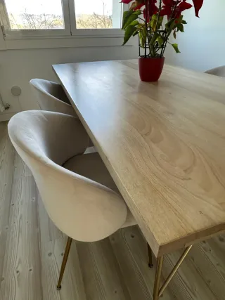 Se vende elegante mesa de comedor de madera de mango en excelente estado, prácticamente nueva. Ha tenido muy poco uso, por lo que se mantiene en perfectas condiciones. Su diseño moderno y robusto la hace ideal para cualquier hogar. Características: • Medidas: 180x100 cm. • Material: madera de mango, con un acabado natural muy elegante. • Antigüedad: 2 años. • Estado: impecable, casi como recién comprada. • Motivo de venta: me mudo y no cabe en el nuevo salón.