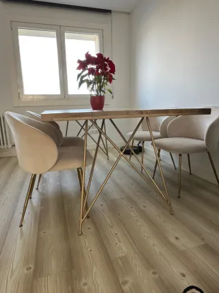Vendo conjunto de mesa rústica de madera maciza con 6 sillas a juego, muy robusto y de gran calidad, ideal para comedor amplio, casa rural o vivienda de piedra. Medidas de la mesa: 📏 140 × 80 × 75 cm Características: • Madera maciza (muy sólida y pesada) • Estilo rústico tradicional • Sillas firmes y cómodas • Buen estado general, uso normal • Conjunto muy duradero, no es mueble moderno ni industrial Precio: 900€ (negociable razonablemente) 📍 Ubicación: Pontevedra 🚚 Recogida en mano (ayudo a cargar) Ideal para quien busque un mueble auténtico, resistente y con carácter.