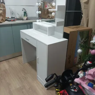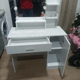 Negociable. Tocador elegante en color blanco, con espejo integrado y luces. - Diseño moderno. - Amplio espejo. - Luces LED. De regalo, espejo/organizador.