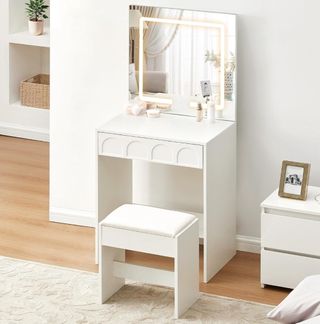 Tocador blanco, espejo y luces. Recoger negociabl