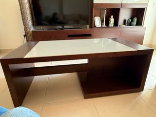Mesa con superficie de cristal y estructura de madera. - Diseño moderno y funcional. - Materiales de calidad.
