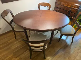 Mesa de comedor con un diseño clásico y elegante. - Patas torneadas. - Superficie lisa y amplia.