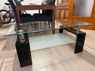 Mesa de centro de comedor de cristal combinada con negro y plateado. 110 largo x 60 ancho x 45 alto **NO SE HACEN ENVIOS 📦**