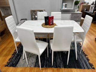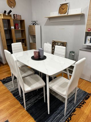 Mesa de comedor de Ikea en color blanco. Ideal para espacios modernos. - Diseño sencillo y funcional. - Patas robustas para mayor estabilidad. Se vende sin sillas, puesto que hay dos que no están en perfecto estado. Si se quisiese las sillas el precio variará aumentando 20€ *Solamente se entrega en mano. Se necesita recoger.