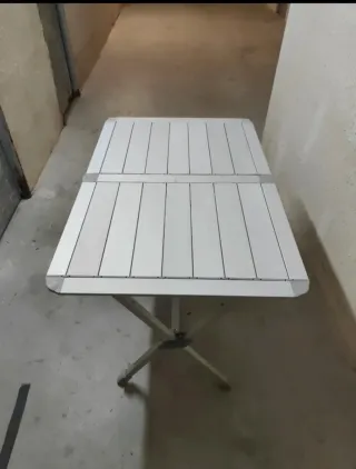 Mesa plegable cuadrada, ideal para espacios reducidos o eventos. - Patas metálicas resistentes. - Superficie de plástico duradero. - Diseño compacto y fácil de guardar.
