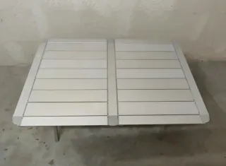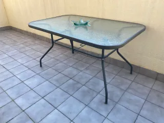 Mesa de exterior ideal para terraza o jardín. Estructura de metal resistente y sobre de cristal templado. Es estable y cómoda para 4–6 personas. En buen estado general, con signos normales de uso. Perfecta para comidas al aire libre o como mesa auxiliar en terraza. 📍 Recogida en mano. 📏 Medidas aproximadas: 141 cm x 89 cm Precio negociable.