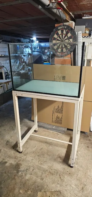 Acuario/urna 210 litros approx de cristal con base de hierro para peces o criar - Medidas aproximadas: - Urna alto 50 cm ancho 76 cm profundidad 55 cm - Mesa a medida alto 90 cm ancho 76 cm y profundidad 55 cm - Pies ajustable - Materiales: cristal y metal
