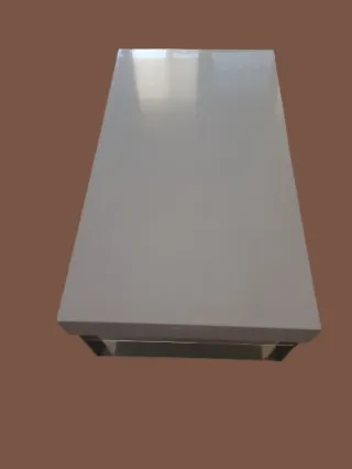 Mesa de centro con diseño moderno y funcional. - Tapa de cristal esmerilado. - Base de metal resistente. - Mecanismo elevable.