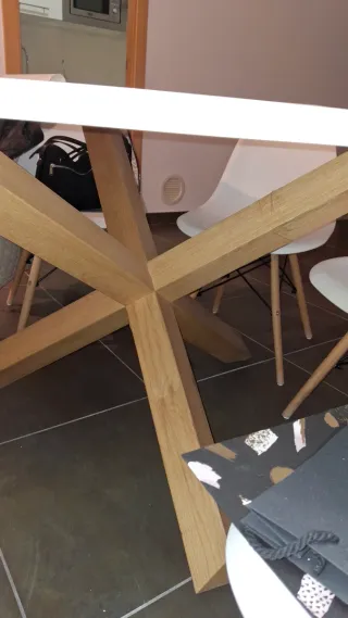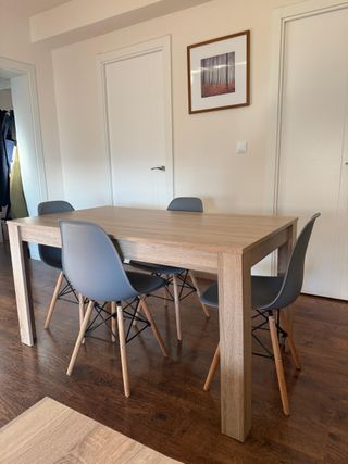Mesa de comedor minimalista y elegante. Usada muy poco, practicamente nueva. Precio nueva: 170€ Las patas se desmontan con una simple allen nuy facilmente.
