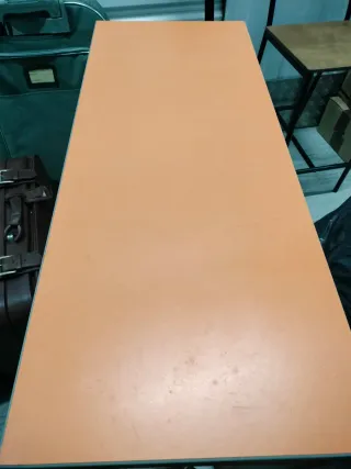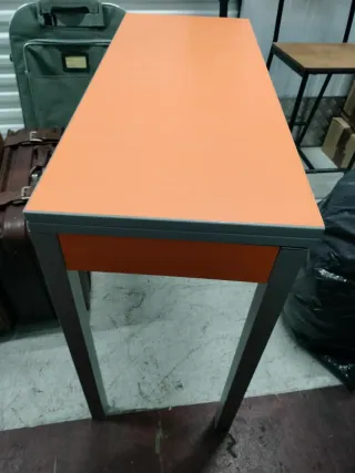 Mesa de cocina con superficie naranja y estructura metálica. - Diseño plegable para fácil almacenamiento. Medidas cerrada 100 x 40 x 78 alto y abierta 100 x 80 - Acabado en color gris.