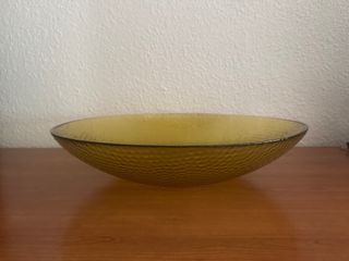 Elegante cuenco decorativo de cristal con un diseño texturizado que añade un toque de estilo a cualquier espacio. Su tonalidad verde y amarilla lo hace versátil para combinar con diferentes decoraciones. - Material: Cristal. - Color: Verde y amarillo.