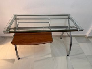 Mesa de ordenador cristal y metal