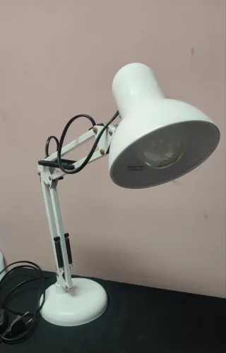 Lámpara versátil, ideal para mesa o lectura. Su diseño combina funcionalidad y estilo. - Base estable. - Brazo flexible para dirigir la luz. - Cable de alimentación incluido. -Incluye luz para lectura de pilas