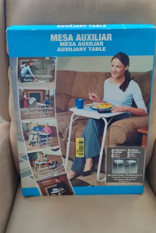 Mesa auxiliar plegable, ideal para múltiples usos. NUEVA - Se guarda fácilmente. - Puede usarse como caballete artístico. - Perfecta como mesa para ver la televisión o tomar aperitivos. - Regulable en 6 alturas diferentes. - Con 3 ángulos distintos.