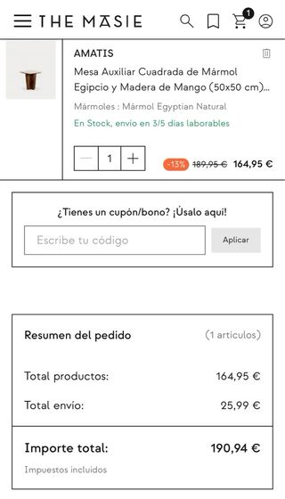 Mesa Auxiliar Cuadrada Amatis de THE MĀSIE sin estrenar. Combina la calidez de la Madera de Mango maciza con la sofisticación del Mármol Egipcio en su tablero, creando una mesa que se adapta perfectamente a cualquier espacio. Su diseño de líneas limpias y bordes suaves la hace ideal para utilizar como soporte para lámparas, libros o plantas, ya sea en la sala de estar, el dormitorio o cualquier rincón que necesite un toque funcional. Medidas en última foto TIENE UNA GRIETA (FOTO 7), DE AHÍ EL PRECIO, AUNQUE APENAS SE NOTA NO ENVÍO # mueble muebles mesilla auxiliar habitación salita salón original regalo barato barata #