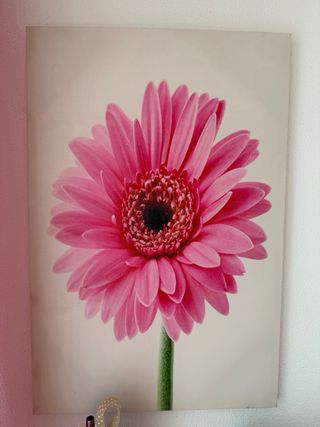 Conjunto decorativo con mesa auxiliar, candelabros y flores. - Mesa auxiliar de color rosa. - Dos candelabros blancos con forma de flor. - Ramo de flores fucsia. - Lámpara de mesa con pantalla rosa y base de madera. -4 cortinas rosas