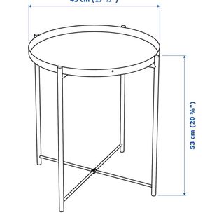 Mesa auxiliar con diseño de bandeja, perfecta para tener a mano tus objetos. - Patas metálicas cruzadas para mayor estabilidad. - Bandeja redonda con borde elevado.
