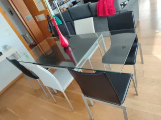 Mesa de comedor cristal y 4 sillas