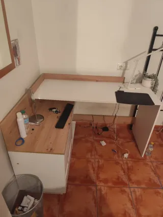 Mesa de estudio funcional y práctica. - Diseño moderno y limpio. - Bandeja extraíble para teclado. - Compartimentos de almacenamiento abiertos. esta un poco usada pero con una capa de pintura queda como nueva
