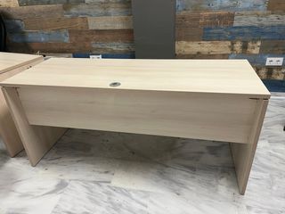 Mesa de escritorio de madera, ideal para tu despacho u oficina. Su diseño moderno y funcional se adapta a cualquier espacio. - Acabado en tonos beige y marrón. - Estructura robusta.