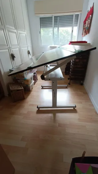 Mesa de dibujo técnico profesional con tablero inclinable, ideal para dibujo artístico, arquitectura, diseño, ilustración, patronaje o manualidades. ✔ Tablero amplio y resistente: 150×92cm ✔ Inclinación regulable para mayor comodidad ✔ Estructura metálica muy estable ✔ Se puede usar también como mesa plana ✔ En buen estado y totalmente funcional Perfecta tanto para estudiantes como para profesionales o para un estudio en casa. Se vende por falta de uso. Recogida en mano, zona empresariales/centro comercial Viapol.