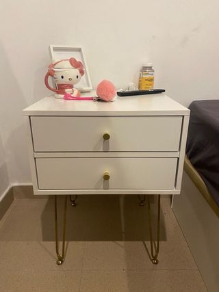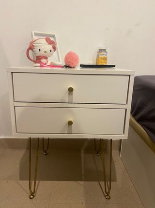 Mesa de noche blanca con patas doradas
