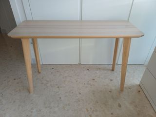 Mesa IKEA de madera clara, diseño sencillo y moderno. Medidas: 120 cm de largo x 46 cm de ancho. Muy poco uso, en perfecto estado, sin golpes ni arañazos.