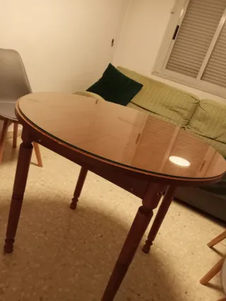 Elegante mesa de centro con superficie de cristal y estructura de madera dura y resistente Se vende porque se nos queda grande Cerrada mide 1,17 metro Abierta mide 2,35 metro - Diseño moderno y funcional. - Combina a la perfección con cualquier estilo de decoración.