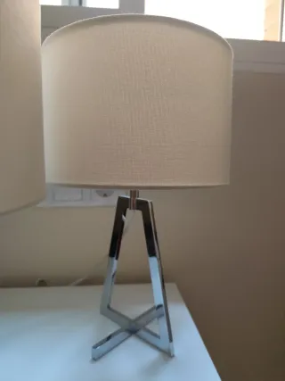 Elegante lámpara de mesa con un diseño contemporáneo. Su base metálica le da un toque sofisticado. - Pantalla de tela. - Base de metal pulido.