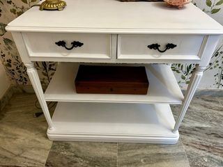 Elegante mesa auxiliar con un diseño moderno y funcional. Ideal para colocar tu televisión o como superficie de apoyo. - Acabado en color blanco. - Estructura de madera. - Recién pintada