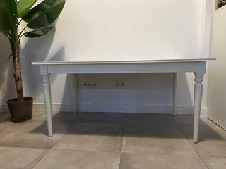 Mesa de comedor extensible modelo ROSENTORP de IKEA. Precio nueva 349 €. Tiene algunos pequeños desperfectos en la superficie (última foto). - Patas torneadas con detalle. - Acabado en blanco.