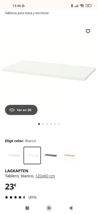 Tablero Mesa Ikea Lagkapten 120x60 Blanco