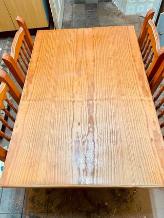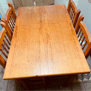 Mesa rústica y 6 sillas de madera