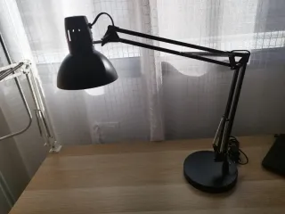 Flexo de mesa estilo arquitecto en color negro. Se encuentra en perfecto estado, como nuevo. - Diseño articulado para ajustar la posición. - Base estable para colocar sobre el escritorio.