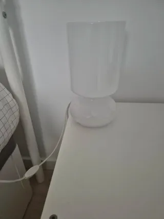 Lámpara de sobremesa de diseño moderno. - Base y pantalla de cristal y plástico. - Color blanco.