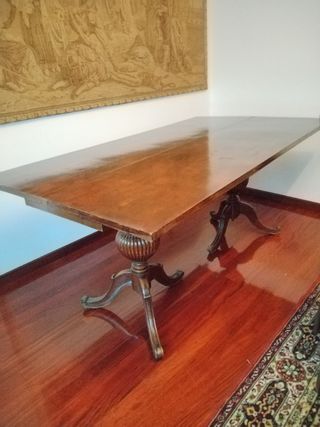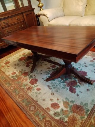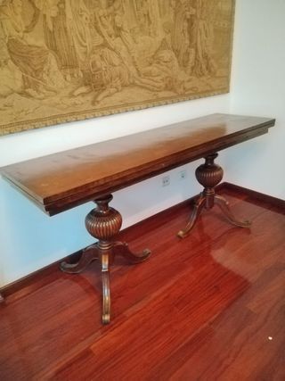 Elegante mesa antigua de madera con capacidad para seis comensales. Su diseño clásico la hace ideal para cualquier comedor. - Estructura robusta y duradera. - Acabado pulido que resalta la veta de la madera. - Patas ornamentadas con detalles tallados. Precio negociable.