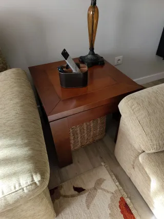 Elegante mesa auxiliar de madera noble, perfecta para complementar tu sala de estar. - Diseño cuadrado de 60x60x55cm con madera color castaño. - Acabado en tonos marrones cálidos.