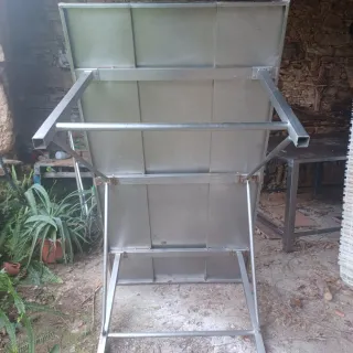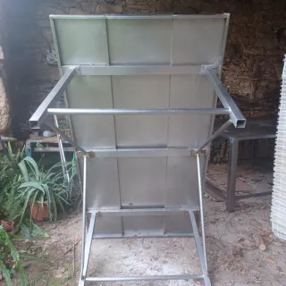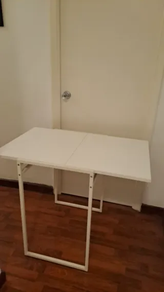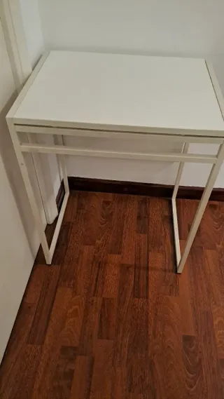 Mesa auxiliar extensible con un diseño moderno y funcional. Perfecta para espacios reducidos o como superficie adicional. - Tablero dividido en dos secciones. - Estructura metálica robusta. - Fácil de plegar y guardar.