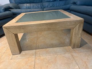 Elegante mesa de centro con sobre de cristal y base de piedra. - Diseño moderno y minimalista. - Combina a la perfección con cualquier estilo de decoración. - Materiales de alta calidad para mayor durabilidad. SE RECOGE EN VALLIRANA
