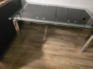 Mesa extensible de cristal templado y aluminio con un diseño bastante moderno , Perfecta para 4/8 personas. Medidas extendida : 180cm largo 82cm ancho 76cm alto (En la zona de las patas es un poco más ancha 90cm) Medidas plegada : 90cm largo 90cm ancho 76 alto Solo recogida , pesa bastante.