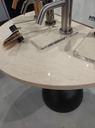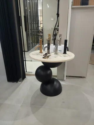 Mesa auxiliar con un diseño moderno y elegante. Perfecta para añadir un toque de estilo a cualquier espacio. - Estructura metálica lacado negro. - Superficie de mesa redonda -permite cambiar el marmol superior .