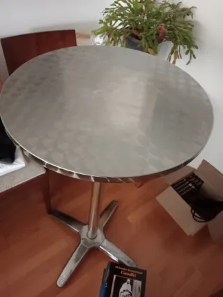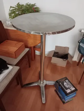 Mesa de terraza con un diseño moderno y funcional, mesa de terraza de aluminio alta. Para reutilizar, camping, local etc. A recoger en Villafranca del Penedés por medidas y peso no puedo enviar. - Tablero redondo de aluminio. - Base metálica robusta.